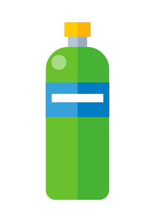 青ラベルと黄色のプラスチック製のボトル ミネラルウォーターのボトルのイラスト ペットボトル アイコン リテール ストアの要素 簡単な図面です 白の背景にベクトル画像を分離しました のイラスト素材 ベクタ Image